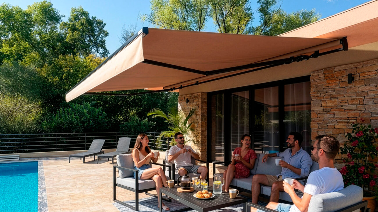 Un store banne apporte des bénéfices immédiats. Il protège efficacement du soleil et de l’éblouissement. Il améliore le confort thermique en limitant la montée en température sur la terrasse et à l’intérieur de l’habitation. Il valorise la façade grâce à une solution esthétique et discrète.